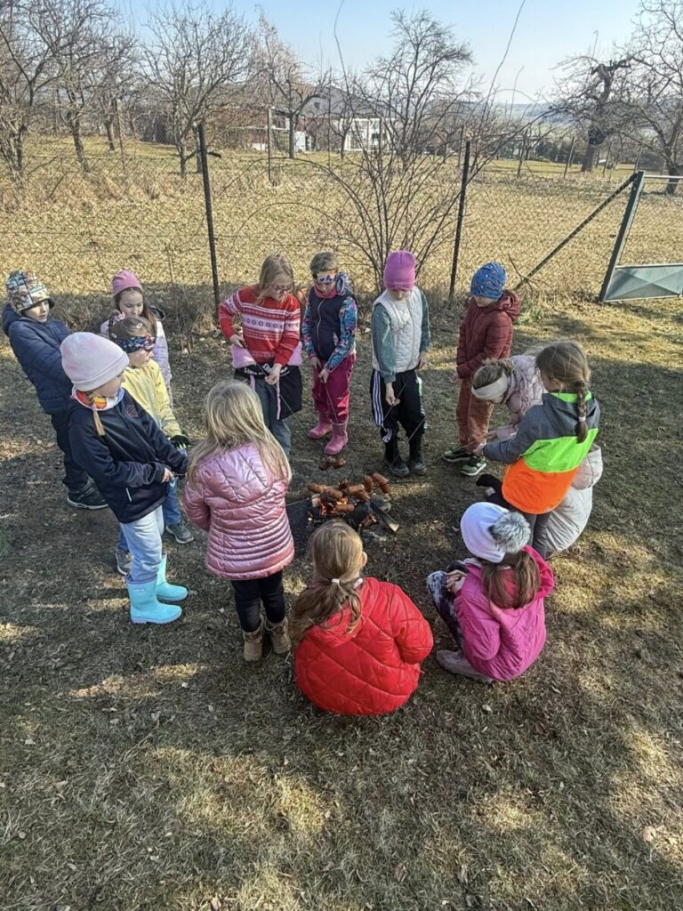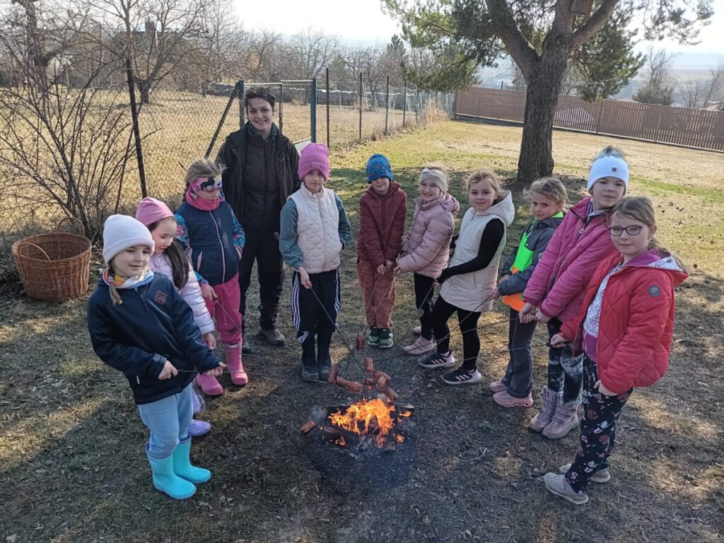 Po poctivé práci přišla zasloužená odměna. Pan Jaroslav Kuchař pro děti připravil špekáčky, které si všichni společně opekli nad ohněm.
