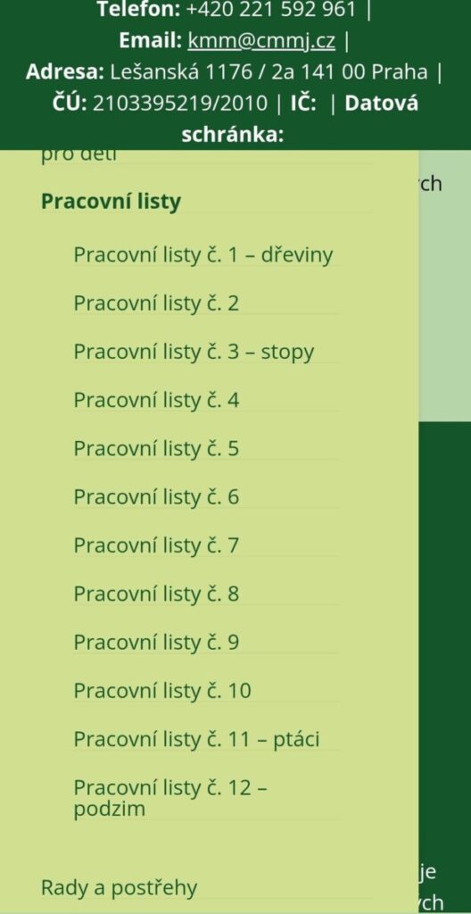 Materiály jsou rozděleny do několika kategorií, které zahrnují pracovní listy, venkovní aktivity, vzdělávací materiály a třeba také odkazy na zajímavé stránky.