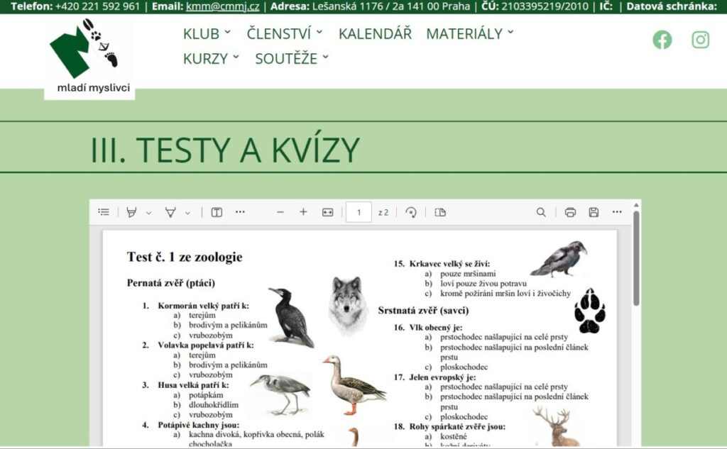 Mnoho zajímavých materiálů najdete na webu Klub Mladí myslivci ČMMJ, z.s., který je na adrese: https://mladimyslivci.cmmj.cz/