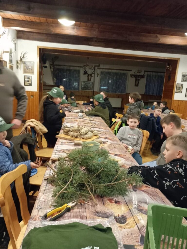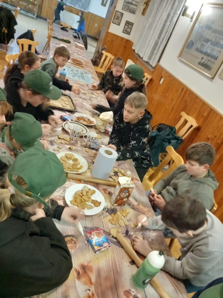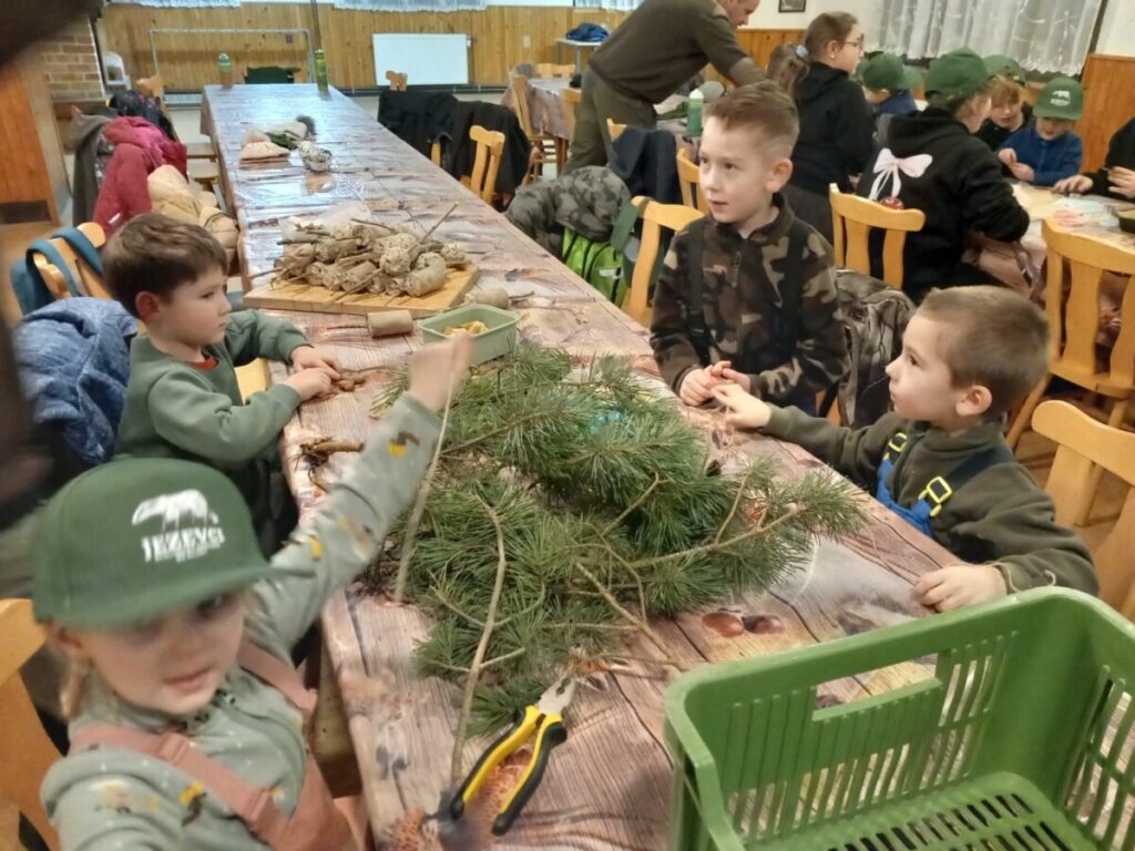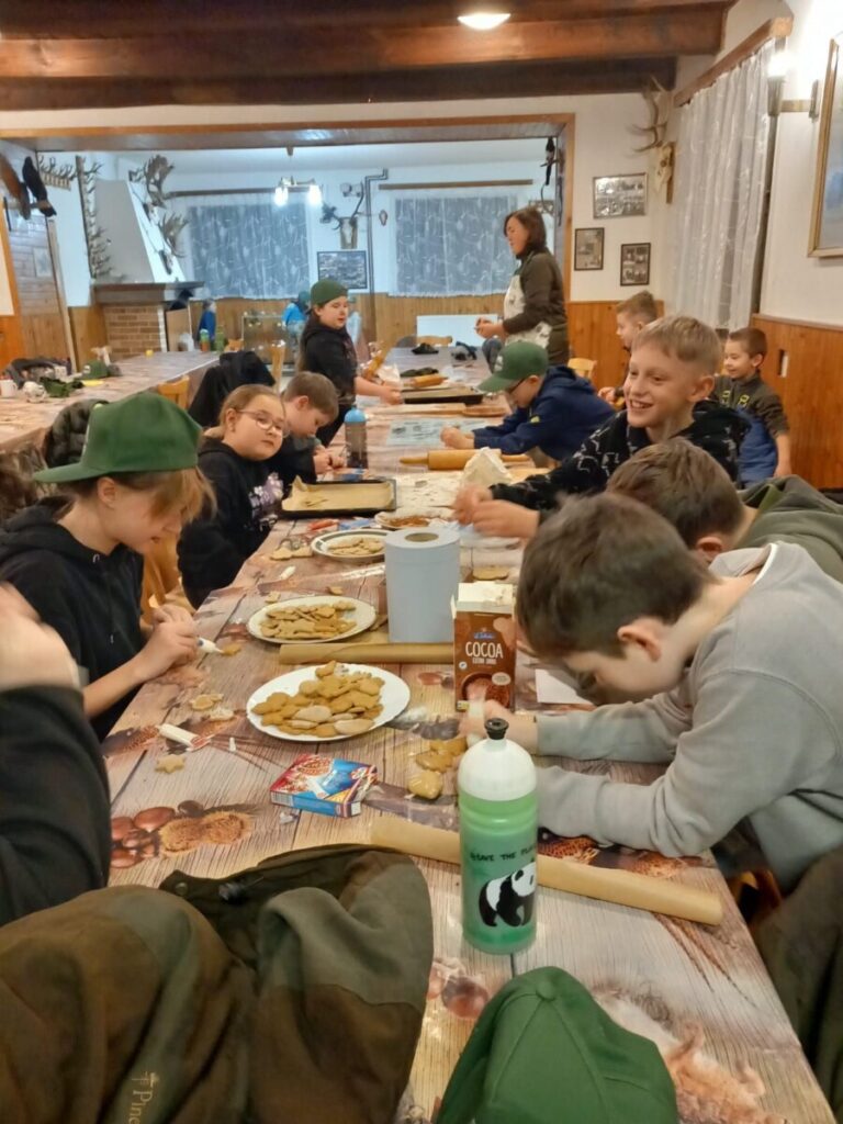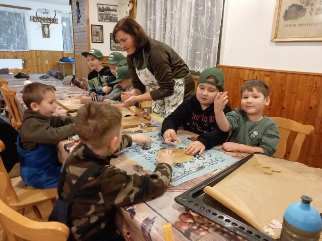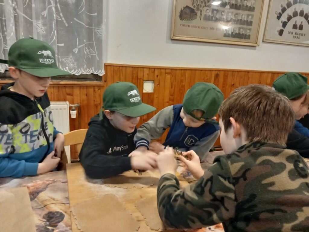 Nejprve se děti vydaly přilepšit zvěři do zásypu a přitom hledaly dárečky od Ježíška. V další části schůzky dodělávaly dáreček pro ptáčky a dokonce se pustily do pečení cukroví.